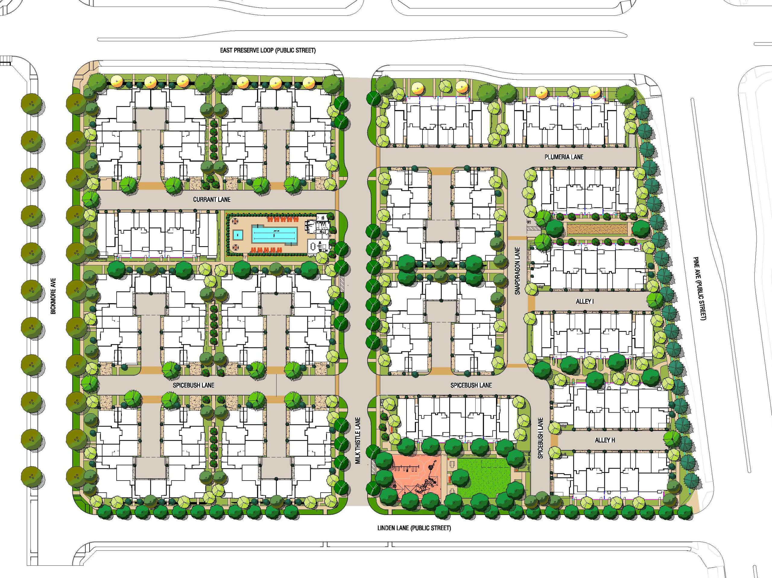 Sage Court and Cedar Row by TriPointe Homes is a 188 unit multi family home development located within “The Preserve” in the City of Chino. A Community Park and Recreation Center provide amenities perfect for relaxation and gatherings. FORMA designed the Park, Recreation Area, and the Production landscape as well as the Model Complex.